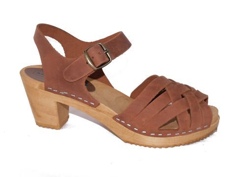 Delightful High Heel Clogs in Cognac Nubuck Leather from Moheda. Made in a nubuck leather the colours in this leather have a slightly tarnished finish and so the colour may vary slighty on the shoes. These clogs fit to size on the These are also available in Red Nubuck. These clogs fit to size on the EUR size. If you know your EUR size then we do recommend that you order your regular size. If you are unsure then we suggest that you measure your feet using our non rocket science method : On a hard floor stand with your heel lightly touching a wall and have a book in your hand. Slide the long edge of the book against your longest toe and then hold the book and remove your foot. Measure the distance from the wall to the book. Add 0.5cm (0.2inches) and look up your EUR size in the table below. If in doubt then then do contact us at info@lottafromstockholm.co.uk and we can advise you further. Do bear in mind that these clogs are made and supplied in EUR whole sizes. The sizes you see below are conversions from the EUR size and variations do occur in the conversions so don't be shy and have a quick measure. Do remember to add 0.5cm to your foot size to give your self some wiggle room. EUR 35 UK 2.5 22.3cmEUR 36 UK 3.5 23.0cmEUR 37 UK 4 23.7cmEUR 38 UK 5 24.5cmEUR 39 UK 6 25.3cmEUR 40 UK 7 25.9cmEUR 41 UK 7.5 26.6cm
